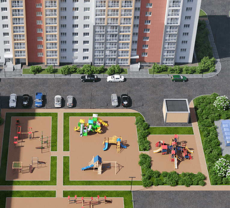 Ухоженные газоны, кустарники и деревья создадут во дворах уют и красоту. Вашим детям будет нескучно: на территории будут установлены яркие детские и спортивные площадки для разных возрастных групп.